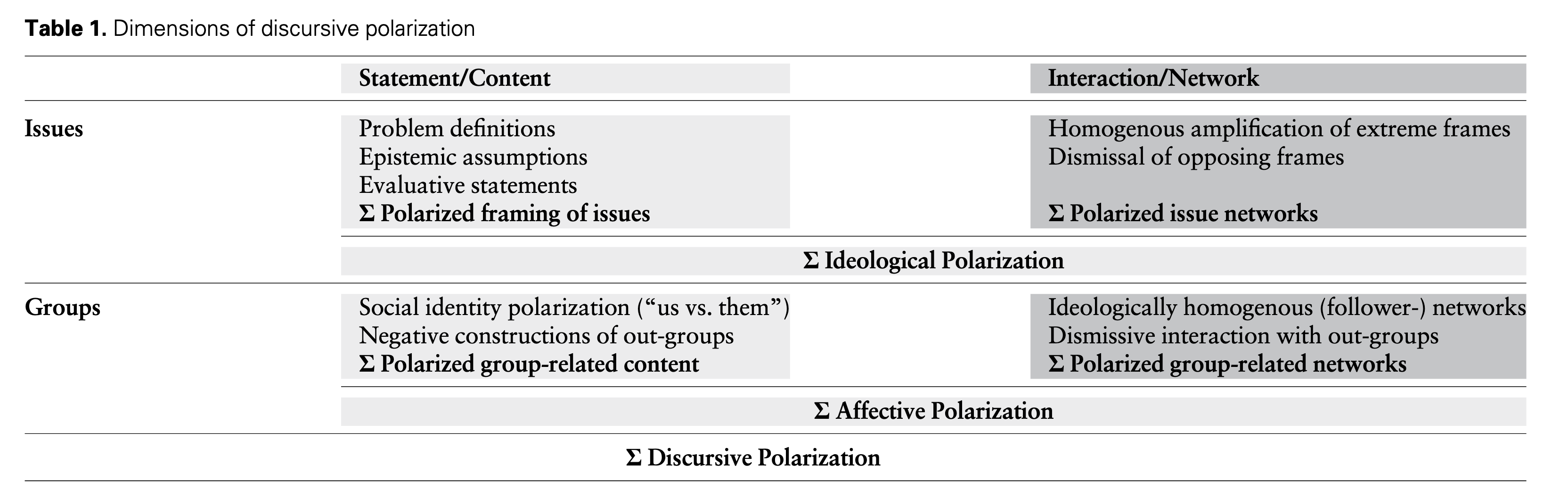 文献来源: Brüggemann, M., et al. Discursive polarization in the public sphere. Communication Theory.