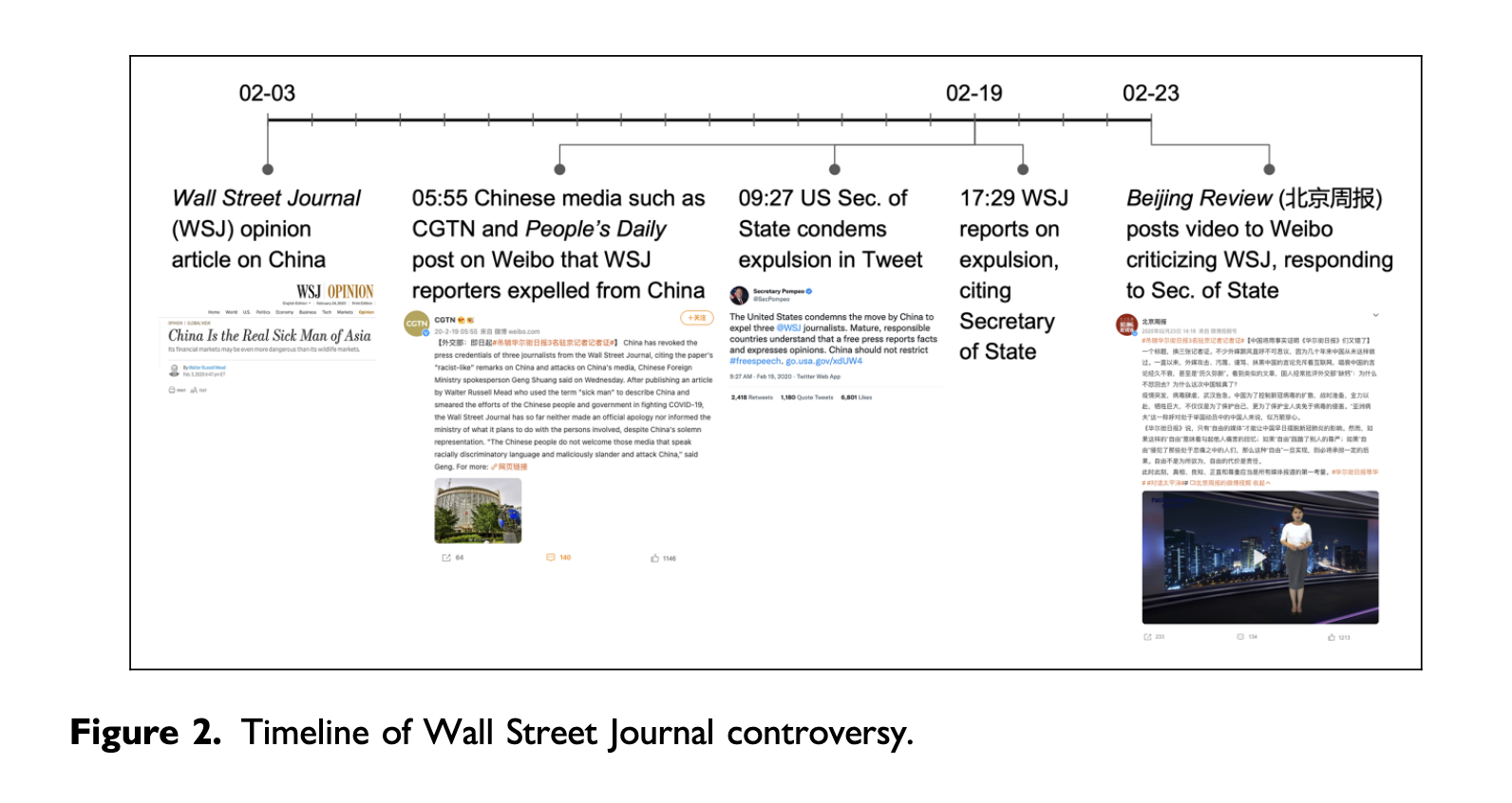 第一类机制:经由中国的控制媒体或中国政府。 控制媒体与政府可以通过在 Weibo 发帖,或借助电视、报纸、网站等其他媒介渠道,报道或回应源自境外的事件、行动、观点与意见。