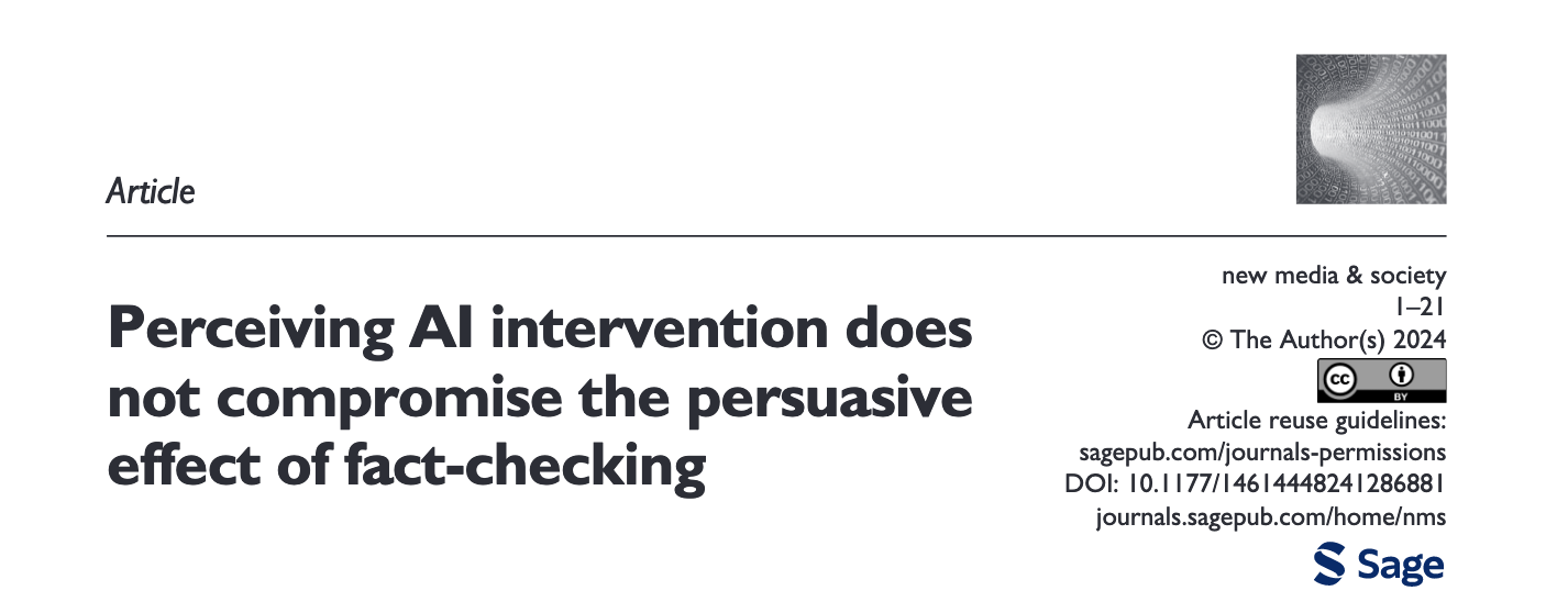 文献来源: Shin, J., & Valenzuela, S. (2022). A Comparison of AI Versus Human Fact-Checkers: Credibility Perceptions and Correction Effectiveness. Journal of Experimental Political Science, 1–13.